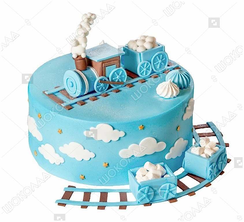 Описание:Целое путешествие на праздничном столе! Паровозик из мастики и вагончики Pin-Up маршмеллоу - чудеса да и только. Выберите одну из рекомендованных начинок для вашего торта.