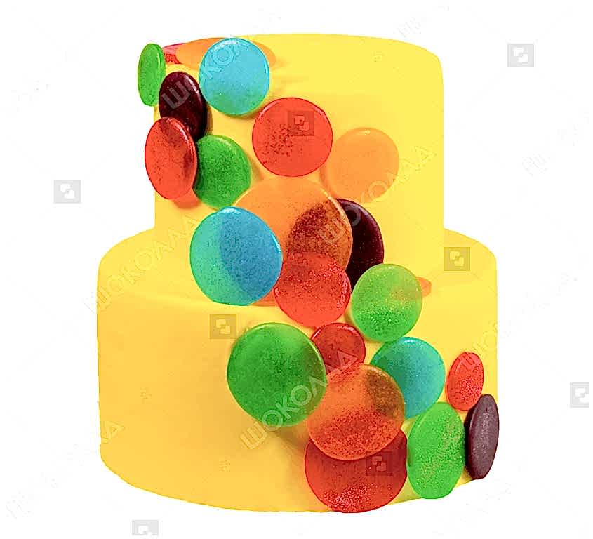 Очень яркий дизайн подойдет абсолютно к любому торжеству! Покрытый мастикой торт изящно уркашен цветными леденцами из изомальта.