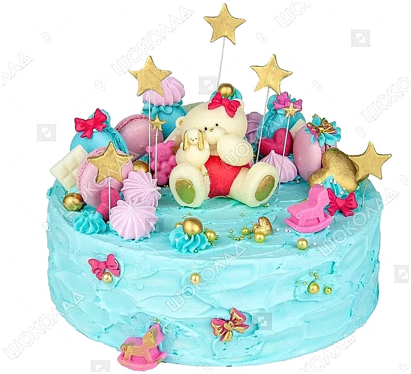Описание:Шоколадный Pin-Up и его друг - шоколадный зайчик - ждут, когда их украсят праздничными свечами и позовут на день рождения. Торт покрытый сливочным кремом, украшенный макарунами и сахарными шариками, приведет в восторг всех детей на празднике, и станет ярким украшением сладкого стола.