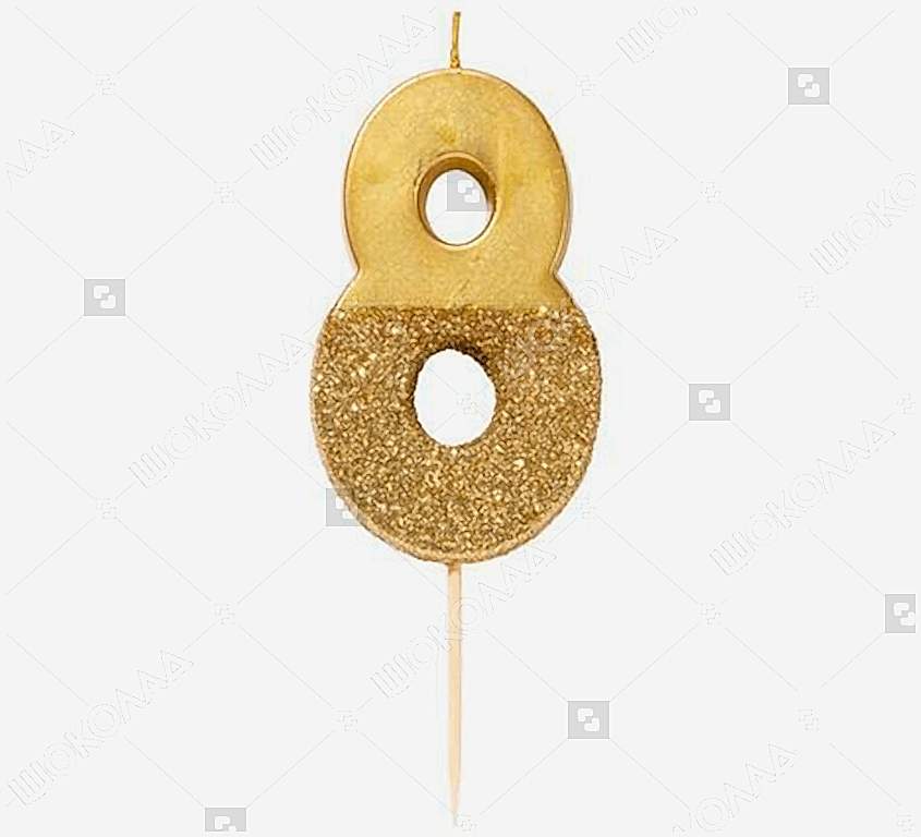 Pin-Up для торта золотая с блестками "№8"
